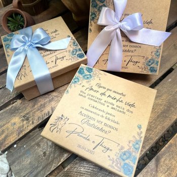 CAIXA PADRINHOS 16,5X16,5X7CM ESTAMPA TOTAL C/ LACO E CONVITE - UNID