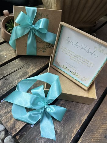CAIXA PADRINHOS 16,5X16,5X5CM COM LETRINHAS C/ LACO SEM CONVITE - UNID